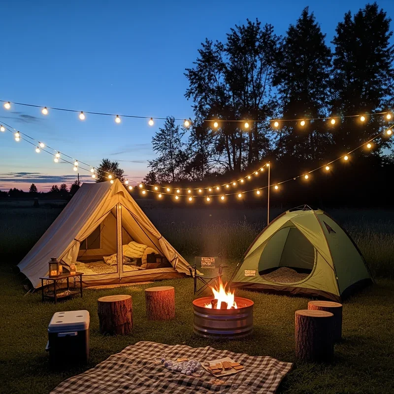 Bring outdoor adventure to your own property with a sophisticated camping setup. Pitch stylish tents or build blanket forts for cozy gathering spots. Set up a fire pit or portable fireplace for s'mores making and storytelling. Provide camping chairs, lanterns, and sleeping bags for authentic atmosphere. Organize classic camping activities like flashlight tag or constellation spotting. Create a camp kitchen with hot dogs, walking tacos, and other easy outdoor foods. Tell ghost stories or share childhood camping memories around the fire. Set up a breakfast station for morning-after pancakes or French toast. This unique party concept works great for kids' birthdays or adult gatherings seeking nostalgic fun. Guests experience outdoor adventure without driving hours to a campground or dealing with uncomfortable sleeping arrangements.