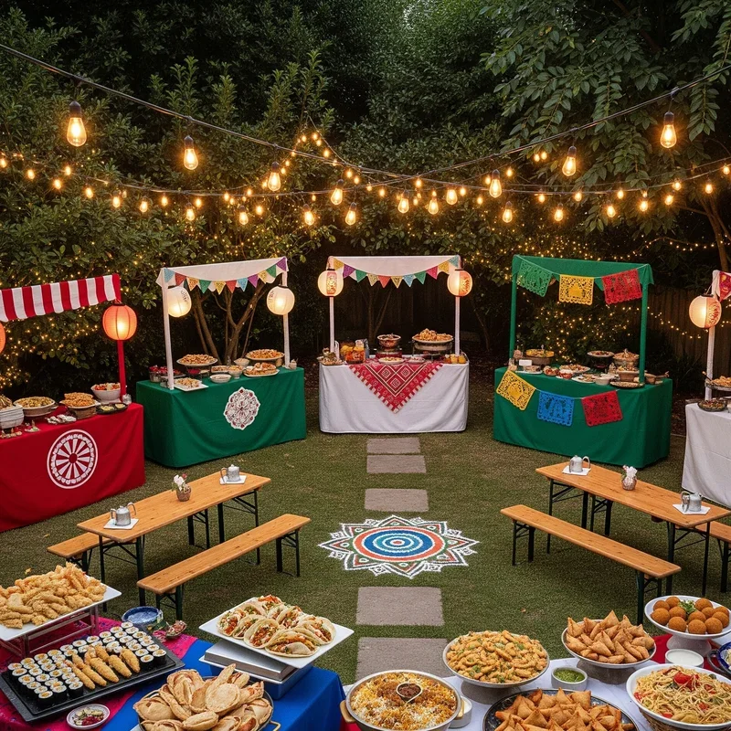 Transport your guests around the world without leaving your backyard by hosting an international food festival. Set up stations featuring dishes from different countries or regions. Encourage guests to bring dishes representing their heritage or a culture they love. Create passport-style cards where guests collect stamps after trying each station. Decorate areas with flags, maps, or cultural elements from featured countries. Play music from various cultures throughout the night to enhance authenticity. Include fun facts or trivia about each cuisine to spark educational conversations. Provide small portions so guests can sample everything without getting too full. This inclusive concept celebrates diversity while introducing everyone to new flavors and traditions. You'll be surprised how food bridges cultural gaps and creates meaningful connections among your guests.