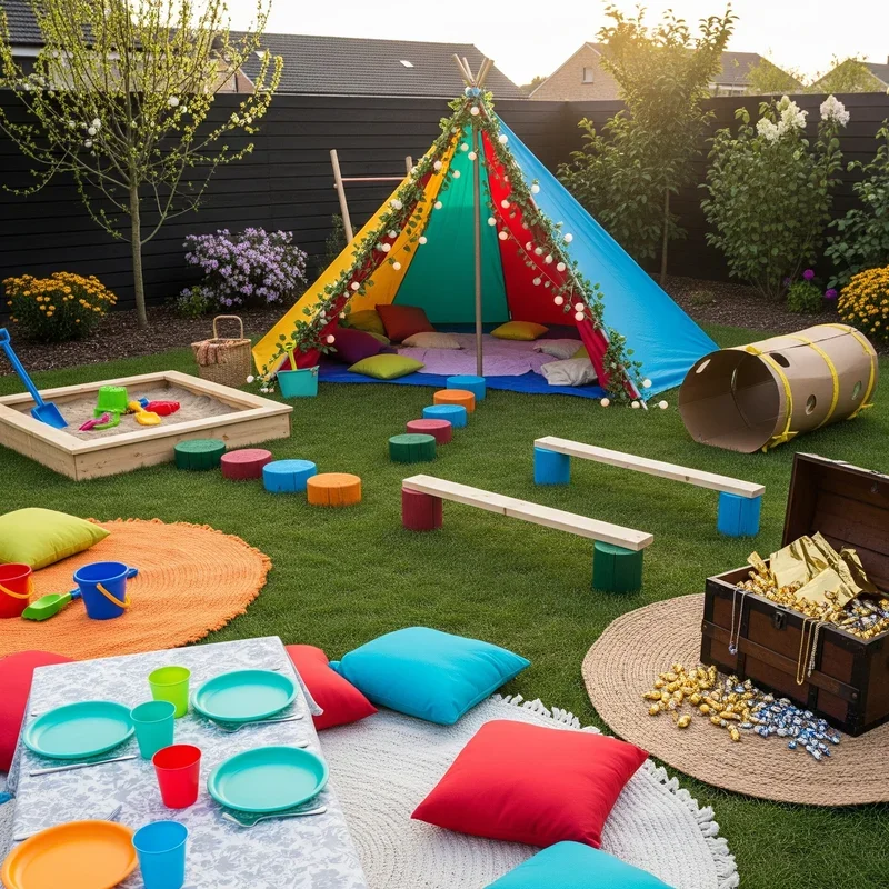 Design an outdoor wonderland that keeps young guests entertained while adults socialize peacefully. Set up multiple activity stations like bubble machines, sidewalk chalk areas, and treasure hunt zones. Create a craft corner with simple projects using washable materials and natural elements. Install a temporary splash pad or water table for hot days. Organize relay races with silly challenges like egg-and-spoon or three-legged races. Provide dress-up clothes and props for imaginative play adventures. Set up a snack station at kid-friendly height with healthy options and treats. Designate older kids or hire teenagers as activity leaders to supervise stations. This thoughtful setup allows parents to relax knowing their children stay safe and engaged. Your family-friendly approach ensures everyone from toddlers to grandparents enjoys the celebration together.