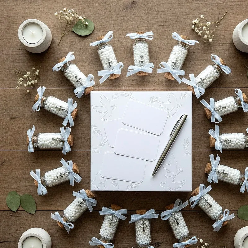Thank your loved ones for witnessing this sacred milestone with personalized favors that serve as lasting reminders of this blessed day. Consider small potted succulents with tags reading "Watch Me Grow in Faith," or custom candles inscribed with the baby's name and baptism date. Handmade soap bars shaped like crosses or angels offer practical yet meaningful gifts, while small glass bottles filled with holy water provide spiritual keepsakes. For book-loving families, miniature Bibles or prayer cards featuring the child's photo make treasured mementos. Package these gifts in organza bags tied with satin ribbons matching your color scheme, adding a small thank you card expressing gratitude. These thoughtful tokens transform from simple party favors into cherished reminders of the love surrounding your child on their special day.