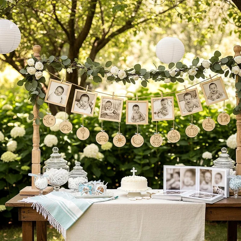 Celebrate the journey that led to this sacred milestone by creating a visual timeline showcasing your baby's growth from birth to baptism day. Arrange photos chronologically along a decorated wall or board, including ultrasound images, first smiles, and special family moments highlighting the blessing this child has been. Add captions describing milestones like "First time holding mommy's finger" or "Meeting grandparents," creating a narrative that draws guests into your family's story. Include meaningful objects such as the baby's hospital bracelet, a lock of hair, or their first outfit in shadow boxes positioned along the timeline. This display becomes a wonderful conversation starter, especially for distant relatives who haven't witnessed every precious moment. Guests will appreciate seeing how your little one has grown, and the timeline serves as a beautiful reminder of God's continuous blessings.