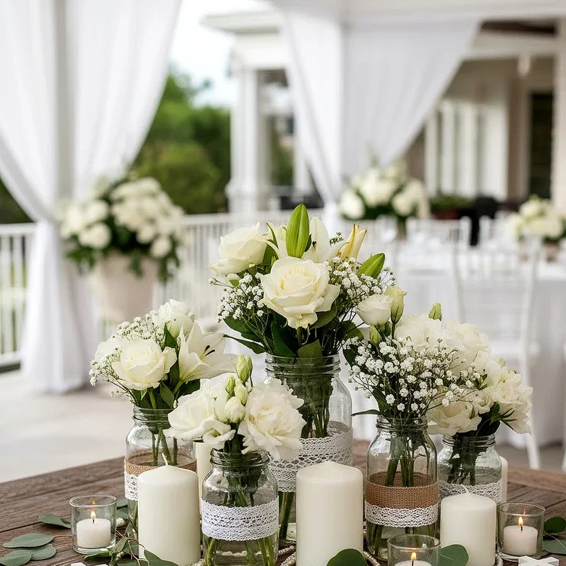 9. Create DIY Centerpieces with White Flowers and Candles