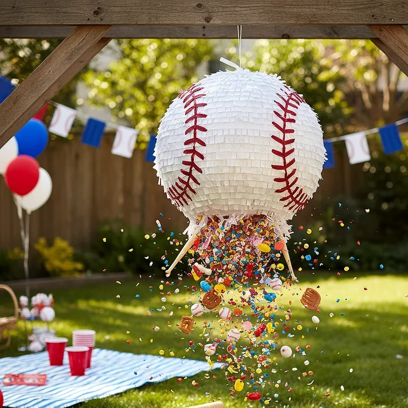 Design or purchase a baseball-shaped pinata filled with baseball-themed candies and small toys, creating an exciting climax activity that guests of all ages anticipate. Hang the pinata in an open area, decorating the space with streamers in team colors and setting up a safe perimeter for spectators to watch. Use a plastic baseball bat for hitting, blindfolding participants and spinning them before their swings for added challenge and hilarity. Fill your pinata with baseball card packs, mini baseball keychains, bubble gum, chocolate baseballs, and other themed treats that scatter when it finally breaks. Create suspense by having everyone count strikes, with cheers erupting when someone finally achieves the "grand slam" hit that breaks it open. This traditional party activity gets a baseball twist that perfectly fits your theme while providing an exciting group moment.