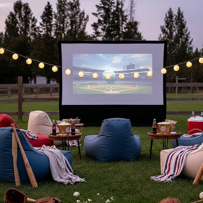 Transform a room into a cozy viewing area where guests can enjoy classic baseball films during party downtime or as the main evening entertainment. Arrange comfortable seating stadium-style with cushions and blankets, creating tiers so everyone has a clear view of the screen playing beloved baseball movies. Queue up family-friendly favorites like "The Sandlot," "A League of Their Own," or "Field of Dreams," letting guests vote on which to watch. Provide individual popcorn boxes and movie theater candy to enhance the cinema experience while maintaining your baseball theme. Dim the lights and use string lights shaped like baseballs for ambient lighting that doesn't distract from the screen. This quieter activity offers a perfect wind-down option for younger guests or a nostalgic journey for adults who love baseball cinema.