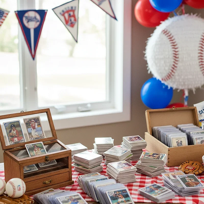 Designate a special area where guests can bring their baseball card collections to trade, share stories, and connect over their favorite players and memorable moments. Set up tables with protective sleeves and price guides available, creating an authentic card show atmosphere right in your party space. Encourage guests to bring duplicates for trading and consider having a few unopened packs as prizes for party games throughout the day. You might even create custom baseball cards featuring party guests using a photo printer and card templates, giving everyone a personalized keepsake. This nostalgic activity appeals to collectors of all ages while providing a quieter alternative to more active games. The trading corner becomes a hub for baseball conversations and connections between generations of fans.