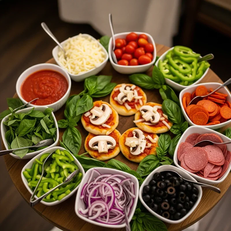 Revolutionize pizza night with an interactive board display. Arrange mini pizza doughs or naan breads as bases. Create sections for various sauces including marinara, pesto, and white sauce. Display toppings in organized rows from vegetables to meats and cheeses. Include unexpected options like truffle oil, arugula, or hot honey. Provide both traditional mozzarella and alternatives like goat cheese or vegan options. Add fresh herbs and spices for finishing touches. This concept works great for parties where guests have different dietary needs. The DIY aspect becomes entertainment while ensuring everyone gets their perfect pizza. Plus, the visual appeal of organized toppings creates an impressive display before cooking even begins.