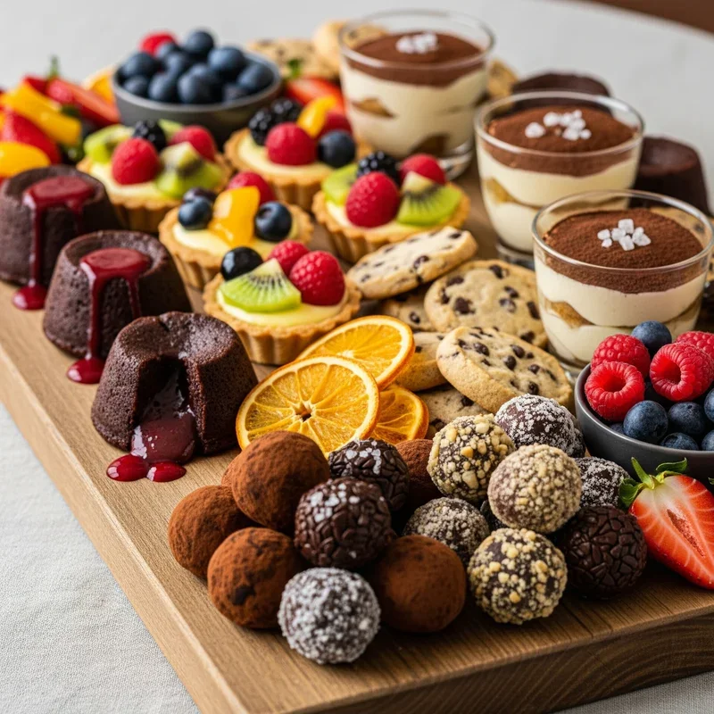 Create a sweet finale that rivals any dessert table. Arrange brownies, cookies, and mini cupcakes in graduated sizes. Include chocolate-covered strawberries, truffles, and candied nuts for variety. Add fresh fruits to balance richness and provide palate cleansers between treats. Incorporate different textures with crispy wafers, soft marshmallows, and chewy caramels. Drizzle sections with chocolate or caramel sauce for added indulgence. Include unexpected elements like edible cookie dough bites or dessert hummus. Provide small spoons for sampling and napkins for sticky fingers. Use colorful macarons or brigadeiros for international flair. This dessert wonderland eliminates the need for traditional birthday cakes while offering something for every sweet tooth preference.