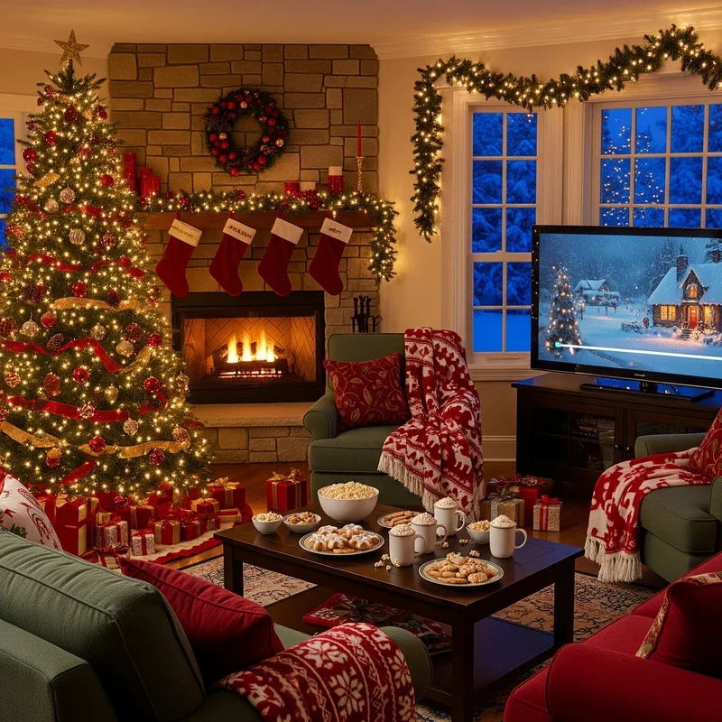 Create the ultimate cozy Christmas experience by transforming your living room into a festive cinema that would make Santa himself want to stay. Curate a lineup mixing beloved classics like "It's a Wonderful Life" with modern favorites like "Elf," ensuring something for every generation and taste. Set up multiple viewing areas with blankets, pillows, and floor cushions, creating a pajama-party atmosphere where comfort rules supreme. Prepare movie-themed snacks: popcorn in festive flavors, candy canes, Christmas cookies, and hot cider that fills the room with cinnamon-scented warmth. Create movie bingo cards with classic holiday film moments, giving prizes when someone gets five in a row during viewing. Between films, host quick trivia sessions about Christmas movies, keeping energy up and conversations flowing naturally. Encourage guests to come in their coziest Christmas pajamas, making everyone feel relaxed and ready to laugh, cry, and sing along to their favorite holiday moments on screen.