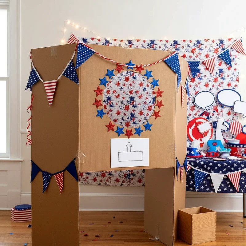 Create an authentic-looking voting booth setup complete with curtains, a podium, and props for memorable photo opportunities throughout the night. Use a large cardboard box or portable changing tent decorated with patriotic bunting to simulate a real polling station experience. Provide fun props like oversized pencils, "I Voted" stickers, Uncle Sam hats, and signs reading "First Time Voter" or "Future President" for creative photos. Set up good lighting and designate someone as photographer or create a selfie station with a ring light and tripod. Encourage guests to share their photos on social media with a custom party hashtag you've created for the event. This interactive element creates lasting memories while celebrating the democratic process in a lighthearted way that brings people together regardless of their political affiliations.
