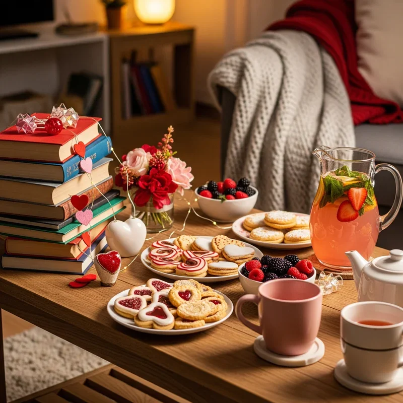 A: Focus on shareable treats like charcuterie boards, chocolates, and plenty of bubbly beverages.