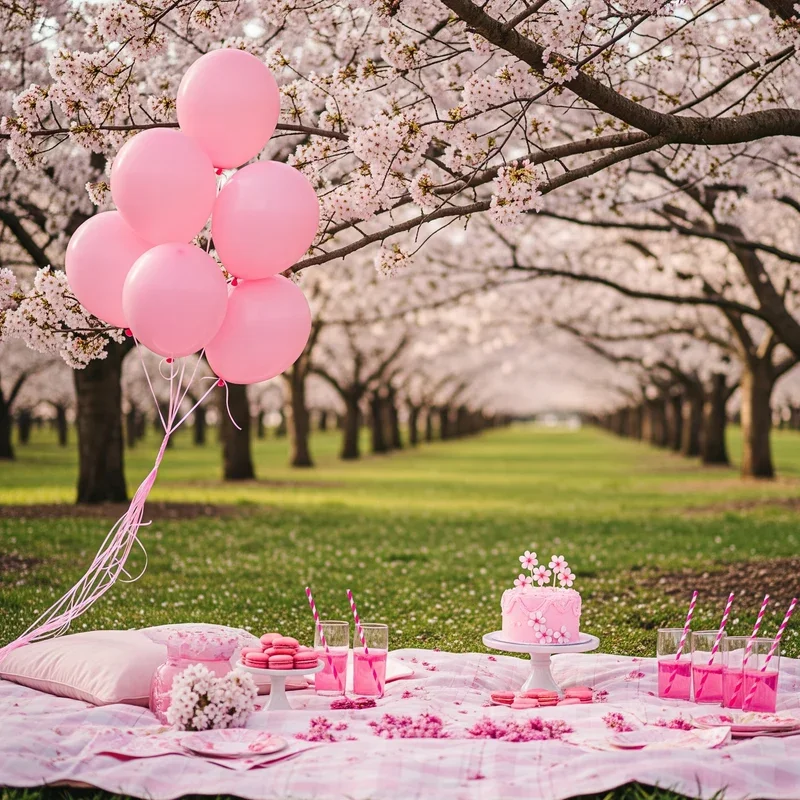Transport guests to a Japanese springtime paradise with delicate cherry blossom pink themes! Create canopies of paper cherry blossoms using tissue paper in various pink shades hanging from branches or wire frames. Set up low tables with cushion seating for authentic Japanese-style dining or use regular tables with cherry blossom centerpieces. Serve Japanese-inspired foods with pink elements: sushi with pink ginger, sakura mochi, and cherry blossom tea. Include origami stations where guests create pink paper flowers or cranes. Play soft Japanese music maintaining the serene atmosphere. Provide paper fans and parasols as both decorations and functional accessories. This elegant theme brings cultural sophistication to pink parties while creating a tranquil, photogenic environment perfect for intimate gatherings.