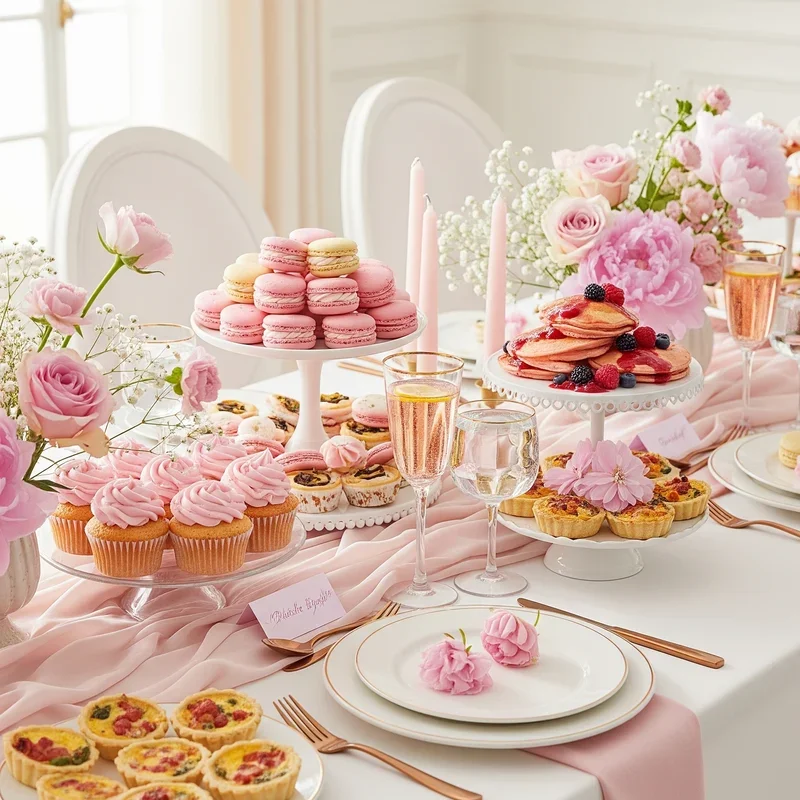 Host an elegant daytime celebration with a pink brunch that's perfectly sophisticated! Set tables with blush linens, pink floral arrangements, and rose gold cutlery creating an upscale atmosphere. Serve brunch favorites with pink additions: rosé mimosas, pink velvet pancakes, strawberry French toast, and pink grapefruit salads. Create a beautiful grazing table featuring pink fruits, rosé-poached pears, and pink macarons. Include activities like flower arranging with pink blooms or calligraphy place cards with pink ink. Play soft acoustic music maintaining the refined morning atmosphere. This sophisticated theme works perfectly for bridal showers, Mother's Day, or any celebration wanting daytime elegance with pink sophistication.