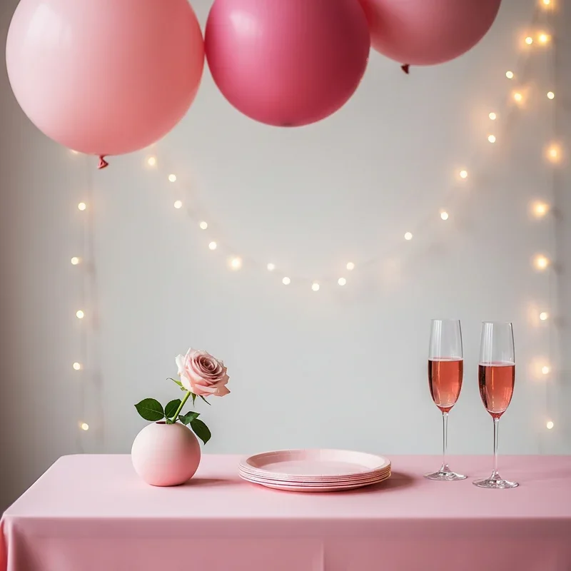 Embrace the sophisticated side of pink with a minimalist celebration that proves less really is more! Use various shades of dusty rose, blush, and mauve creating depth without overwhelming the space. Set up geometric decorations using pink triangles, circles, and hexagons against white or grey backgrounds for that Instagram-perfect aesthetic. Serve monochromatic foods: rosé, pink hummus, strawberry salads, and rose macarons arranged on marble serving boards. Keep decorations clean and purposeful with single stem pink roses in clear vases and pink candles providing ambient lighting. Include a photo wall with a simple pink gradient backdrop for those essential social media moments. This refined approach appeals to adults wanting pink without the princess vibes. The minimalist aesthetic photographs beautifully while proving pink can be sophisticated and trendy.