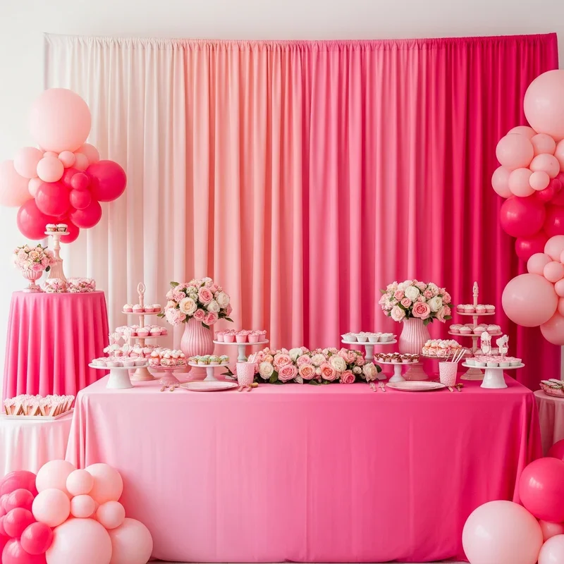 Create visual magic with an ombre party transitioning through every shade of pink imaginable! Arrange decorations progressing from palest blush to deepest magenta creating stunning gradient effects. Design a balloon arch showcasing the pink spectrum or hang streamers in gradually darkening shades. Serve an ombre cake with layers transitioning from white to deep pink when sliced. Create drink stations with beverages in varying pink intensities from barely-there pink lemonade to deep cranberry cocktails. Set up photo areas with ombre backdrops encouraging guests to position themselves by their favorite pink shade. Include ombre nail art or hair chalk stations for temporary pink gradients. This artistic approach showcases pink's versatility while creating incredibly photogenic moments.
