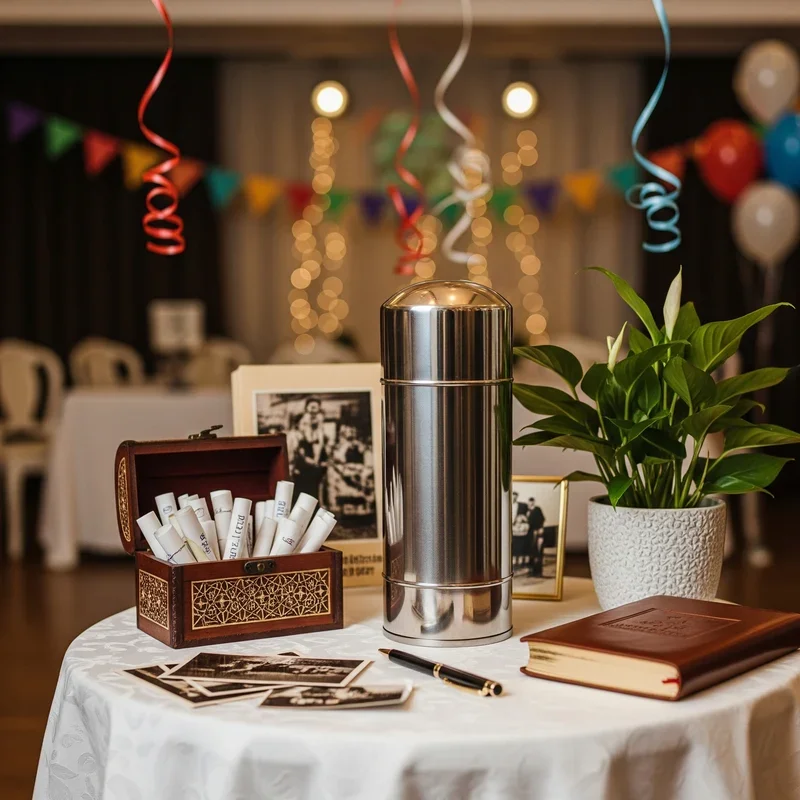Give the retirement party deeper meaning by organizing a time capsule ceremony that captures this pivotal moment for future reflection. Provide materials for guests to write letters to the retiree to be opened at specific future milestones: one year into retirement, their 70th birthday, or their 50th wedding anniversary. Include current newspapers, photos from the party, a USB with favorite work memories, and symbolic items representing their career achievements. Ask each department or close colleague to contribute something meaningful: inside jokes, team photos, or items representing shared experiences. Have the retiree add their own items: goals for retirement, predictions about the future, or messages to their future self. Seal everything in a decorative container during the party, making the ceremony itself a memorable moment. This activity transforms a simple party into a profound ritual marking the transition between life chapters.