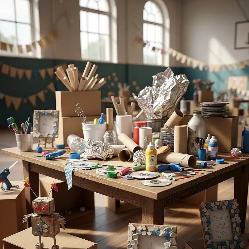Celebrate creativity and environmental consciousness with a party dedicated to transforming trash into treasure through innovative upcycling projects. Collect various recyclable materials like cardboard boxes, plastic bottles, newspapers, and egg cartons, then challenge students to create useful or decorative items. Set up craft stations for making planters from plastic bottles, robots from cardboard boxes, jewelry from magazine pages, or musical instruments from various containers. Students can participate in a recycled fashion show, displaying wearable art created from unusual materials. Include a contest for the most creative reuse of a single item. This eco-friendly celebration teaches environmental responsibility, resourcefulness, and creative problem-solving while showing students that art materials don't always need to come from a store.