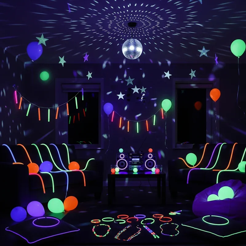 Transform darkness into a neon wonderland where everyone becomes a human glow stick on the dance floor! Black out windows and set up UV lights to create the perfect glow environment. Provide glow sticks, neon face paint, white clothes for maximum glow effect, and LED accessories. Create a killer playlist mixing current hits with throwback classics that everyone knows the words to. Add glow-in-the-dark tape to create dance floor boundaries or games like limbo and freeze dance with glowing props. The darkness provides cover for those self-conscious dancers while the glowing elements make everyone look cool. Include dance-offs, teach TikTok dances, or create music videos using phones with night mode. This high-energy activity perfectly times for that post-dinner energy burst while creating an otherworldly atmosphere that feels special and secretive.