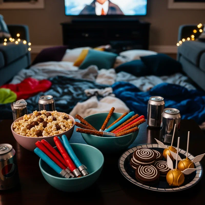 Turn your living room into a private cinema where the dress code is pajamas and the snacks never run out! Create a lineup mixing classics, comedies, and just scary enough thrillers that won't actually prevent sleep later. Build a cozy viewing nest with every pillow and blanket in the house arranged stadium-style so everyone has a perfect view. Match your snacks to movie themes like wizarding world treats for Harry Potter or tropical snacks for Moana. Set up a concession stand with popcorn bar featuring different seasonings, candy organized in apothecary jars, and drinks in vintage-style bottles. Create movie tickets for each film and let guests vote on what to watch next. The marathon becomes interactive with movie bingo cards featuring common tropes or drinking games with juice for younger crowds.