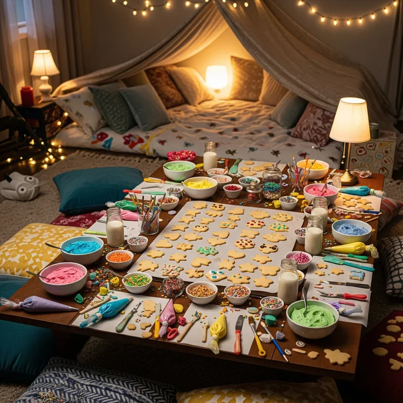 Transform your kitchen into a sweet art studio where cookies become canvases and frosting becomes fine art! Bake sugar cookies in various shapes beforehand or buy plain ones saving time for decorating. Provide multiple frosting colors in squeeze bottles, sprinkles, edible glitter, candies, and food-safe markers for detailed work. Create themes like "cookie self-portraits," "dream vacation," or "favorite meme" inspiring creativity. Set up decoration stations with tutorials for techniques like flooding, wet-on-wet, and royal icing transfers. Include challenges like blindfolded decorating or partner cookies where teams alternate adding elements. Display finished cookies on a judging table with categories ensuring everyone wins something. The sugar rush perfectly times for late-night energy while creating edible art doubles as tomorrow's breakfast treat. This activity naturally encourages sharing techniques and collaborating on designs.