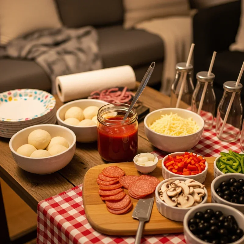 Turn dinner into an interactive culinary adventure where everyone becomes a pizza artist with edible canvases! Prepare individual portions of dough or use pita bread and naan for easier handling. Set up a toppings bar with classic options plus unexpected additions like mac and cheese, tater tots, or fruit for dessert pizzas. Provide chef hats made from paper and markers for decorating, creating a real pizzeria atmosphere. Let creativity run wild with pizza shape challenges or themed creations like pizza faces or rainbow pizzas. While pizzas bake, hold contests for most creative combination or best pizza name. The hands-on cooking keeps guests engaged while ensuring everyone gets exactly what they want for dinner. This activity naturally creates conversation and laughter as guests share their weird topping combinations and defend their culinary choices.