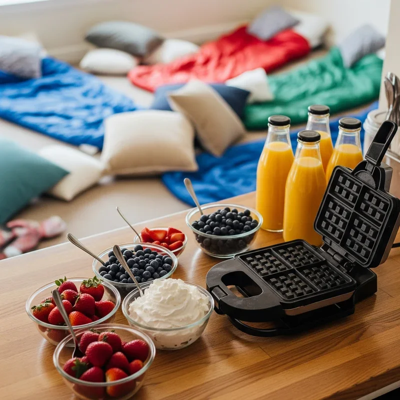 End your epic night by beginning the new day with a breakfast spread that makes waking up worth celebrating! Prep a pancake or waffle bar with toppings like chocolate chips, fruit, whipped cream, and syrups in rainbow colors. Set up a cereal buffet with multiple options for mixing and matching creative combinations. Include a yogurt parfait station with granola, honey, and fresh fruits for healthier options. Prepare breakfast pizza or egg muffins the night before for easy reheating. The breakfast bar rewards survivors of the all-nighter while providing energy for the journey home. Create breakfast mocktails with juice combinations in fancy glasses making morning feel special. This final activity brings closure to the sleepover while ensuring everyone leaves satisfied and already planning the next gathering.
