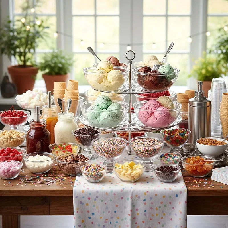 Nothing screams sprinkle party quite like an interactive ice cream sundae bar where guests can create their own frozen masterpieces. Set up a station with multiple ice cream flavors kept cold in vintage-style metal tubs filled with ice. Arrange an array of toppings in clear glass bowls, featuring various sprinkle types, chocolate chips, crushed cookies, gummy candies, fresh fruit, and whipped cream. Provide different cone options and bowls, along with colorful spoons and napkins. Create instruction cards suggesting fun combinations or challenge guests to build the tallest sundae. Keep wet wipes nearby for sticky fingers and consider having aprons available for younger guests. This hands-on activity brings people together, sparks conversation, and ensures everyone gets exactly what they want for dessert.