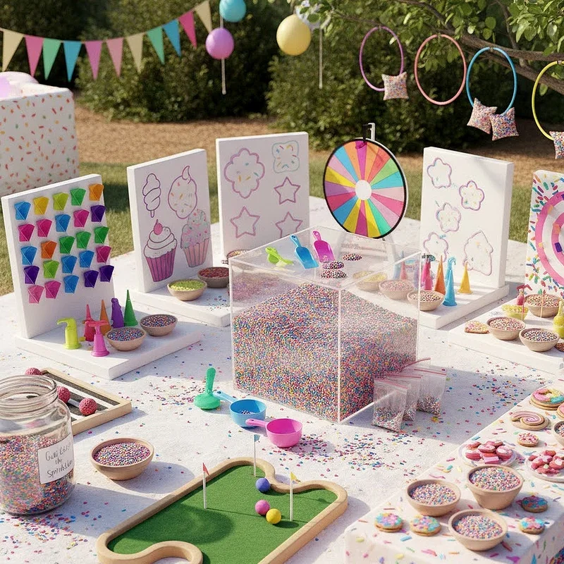 Add excitement to your party with interactive games that incorporate the sprinkle theme in creative and entertaining ways. Set up a "Sprinkle Toss" where guests throw colorful bean bags into containers decorated like giant cupcakes at varying distances for different point values. Create a "Guess the Sprinkles" game by filling jars with different amounts and having guests estimate the number. Organize a relay race where teams transfer sprinkles using only spoons, racing against time without spilling. For younger guests, hide plastic eggs filled with sprinkles around your party space for a treasure hunt. These activities break the ice between guests who might not know each other well and create lasting memories filled with laughter. Award small prizes that fit your theme, keeping the competitive spirit light and fun for everyone involved.