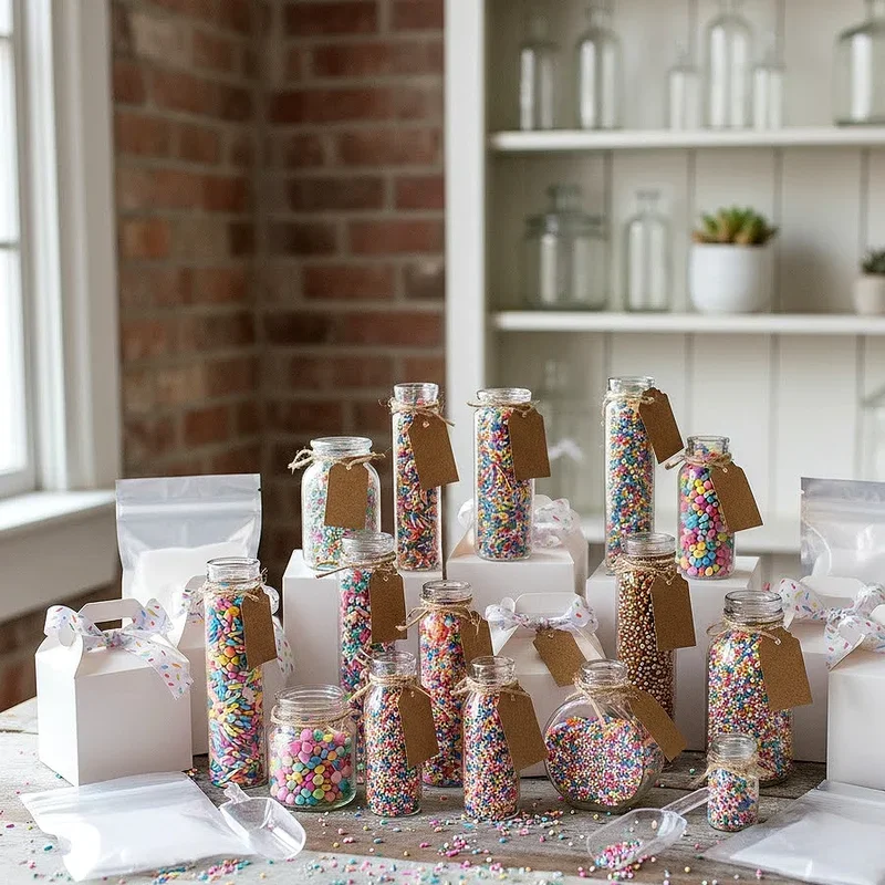 Send your guests home with sweet reminders of your special celebration through thoughtfully crafted party favors. Fill clear bags or small mason jars with colorful candy, homemade cookies decorated with sprinkles, or custom sprinkle mixes for baking. Attach personalized tags reading "Thanks for sprinkling joy on our day" or similar cheerful messages. Consider practical favors like sprinkle-shaped keychains, colorful hair ties, or mini bottles of nail polish in sprinkle colors. Package everything in boxes or bags that match your party's color scheme. You might also create DIY sprinkle bath salts by mixing Epsom salt with food coloring and essential oils, presenting them in cute containers. These favors serve as lasting mementos that remind guests of the fun they had at your sweet celebration.
