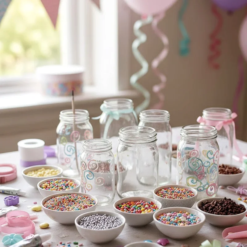 Give your guests a creative outlet with a craft station where they can design their own sprinkle jars to take home. Provide small glass jars, various types of colorful sprinkles, ribbons, stickers, and markers for decorating. Set up the craft area with protective table coverings and include sample jars for inspiration. Guests can layer different colored sprinkles to create patterns or mix their favorite combinations. Add labels so they can name their custom sprinkle blend and include recipe cards suggesting ways to use their creation at home. This activity works especially well during baby sprinkles where guests can create something special for the parent-to-be. The finished jars double as party favors and give attendees a hands-on experience that encourages creativity while providing a practical keepsake from your celebration.