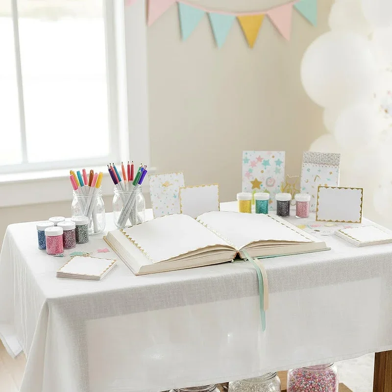 Create a lasting keepsake from your sprinkle party by setting up a memory book station where guests can leave messages and mementos. Provide a beautifully decorated scrapbook or journal with colorful pages that match your party theme. Set up a table with various colored pens, markers, stickers, and sprinkle-shaped confetti for decorating pages. Include an instant camera so guests can take photos and immediately add them to the book with their messages. Create prompts like "Sprinkle a wish for the birthday girl" or "Share your sweetest memory" to inspire thoughtful entries. Position this station in a quieter area where guests can take their time creating something special. This interactive element produces a treasured keepsake you'll enjoy reading long after the party ends, preserving the joy and love shared during your celebration.