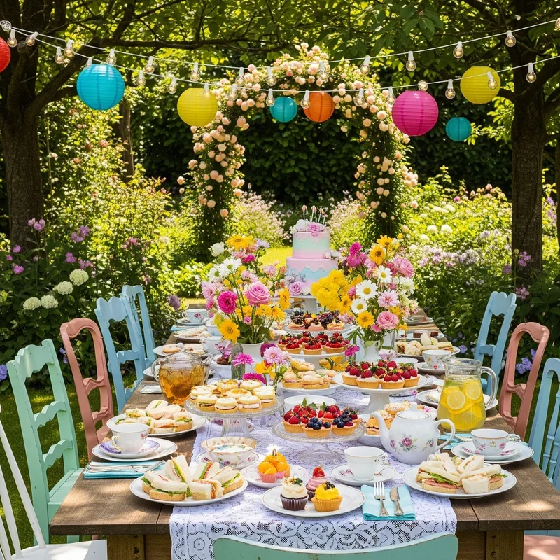 Channel your inner aristocrat with an elegant garden party that makes everyone feel fancy while enjoying nature's beauty! Set up tables with vintage tablecloths, mismatched china, and fresh flower centerpieces picked from your garden. Hang paper lanterns or bunting from trees to define your party space. Serve finger sandwiches, scones with jam, petit fours, and of course, various teas in proper teapots. Encourage guests to wear sun hats and summer dresses for that perfect garden party aesthetic. Set up croquet, lawn bowling, or giant Jenga for genteel entertainment. Create a flower crown station where guests can craft their own botanical accessories. The combination of refined elements with outdoor casualness strikes the perfect balance for a sophisticated yet relaxed celebration that works wonderfully for milestone birthdays.